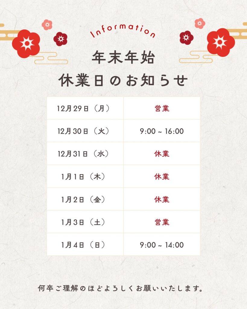 営業時間外でも対応可能な場合もございますので、お気軽にお問い合わせください。