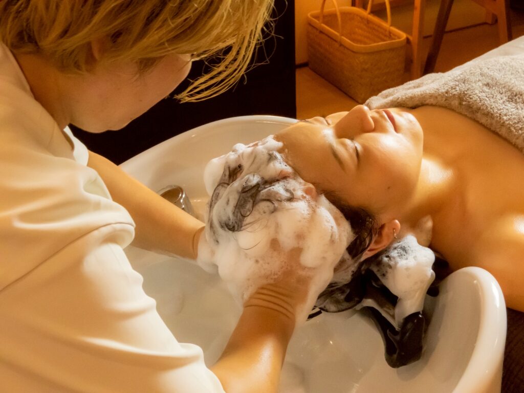 20〜30分のカウンセリングと触診で体調や頭皮状態を確認し、シャンプー・ヘッドスパを中心にフット・ハンド・リンパなど約12種類の手技を組み合わせます。 頭から足先まで整う、贅沢な“全身リセット体験”をご堪能ください。